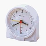 Puck model. Quartz battery analog alarm clock. Accurate quartz movement. Light snooze bar. Luminous hands. Ascending alarm. Requires 1 "AA" battery (not included). 2.875" L. x 1.375" D. x 3" H. White.