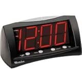 Alarm with oversized snooze bar. Battery back-up. 1.8" red LED alarm clock. Includes alarm set, hour/min., and time set buttons.