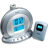 This clock can emit the sounds of nature. It can take you back to your primal roots and soothe your inner being from all that modern noise you experience throughout the day. Choose from 6 digital recorded natural sounds: ocean, waterfall, summer night, rainforest, thunder and rain. Create your perfect sleep environment with this always accurate atomic clock. Doze off to one of six natural sounds, and know how to dress in the morning with a remote sensor reading of the outdoors temperature.Too lazy to roll over and read the clock face? Project it onto the ceiling instead, both temperature and time. Tired of nature? Just turn on the radio!