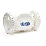 I have been a terrible person to wake up all my life and usually get used to the sound of an alarm clock and just don't hear after a while.I do like this clock a lot because it runs away from you and you have to get up to get but I wish it would stay on the move for a longer time period.It often doesn't get that far away from your bed and I am someone that can fall back asleep with in seconds so it would work better if I had to walk farther.The only other thing that I didn't care much for was that it was kind of tricky setting the length of time for the snooze setting.You can set it from 1 to 9 minutes.It took me a few minutes to be able to get to this menu.Other than that initial problem, I really feel this is the greatest alarm clock that I have owned.I wish it was a little lounder.Once again, I am a very heavy sleeper and I really don't think there is a perfect clock out there for me but this is the closest I have found.Click Here to see more reviews about: Nanda White Clocky Run & Hide Alarm Clock w/ Wheels